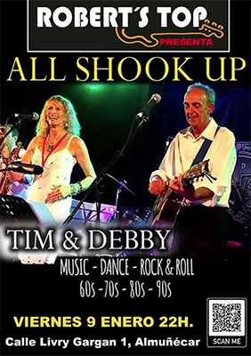 ALMUÑÉCAR – In bar/restaurant Robert’s Top in Almuñécar staat vrijdagavond 9 januari een optreden geprogrammeerd van het Dúo All Shook Up. Het optreden begint rond 22.00 uur.