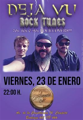CÓMPETA – Bij La Carpinteria Bar in het Axarquía-dorp Cómpeta treedt vrijdagavond 23 januari de rockband Deja Vu op. Het optreden begint rond 22.00 uur.