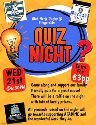 NERJA – In café/restaurant Marazul by Fitzgerald´s, aan de Avenida Mediterráneo 2 in Nerja, staat woensdagavond 21 januari een (Engelstalige) quizavond gepland. Deze begint om 18.30 uur, de inschrijvingskosten bedragen 3 euro per persoon.