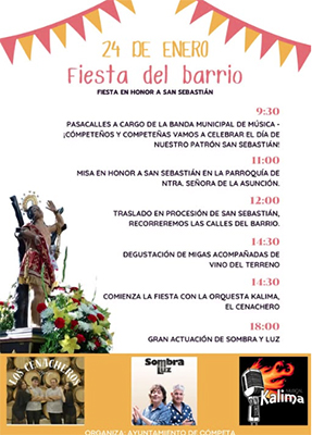 Dit gebeurt vanaf 09.30 uur in de ochtend, gedurende de gehele dag én avond zijn er diverse festiviteiten. Daarbij staan tal van optredens geprogrammeerd, onder meer van het Orquesta Kalima, de groep Los Cenacheros én de formatie Sombra y Luz.