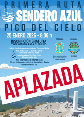 NERJA – De door de gemeente Nerja voor zondag 25 januari geplande wandeling naar de Pico del Cielo is vanwege de voorspelling van slecht weer (regen en harde wind) opnieuw uitgesteld. De tocht stond aanvankelijk op de rol voor half december en werd destijds (ook vanwege het slechte weer) doorgeschoven naar zondag 25 januari. Nu ook dit niet haalbaar blijkt is gekozen om te tocht in te plannen voor zondag 15 maart.