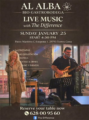 Dit gebeurt bij bio-en gastrobodega Al Alba aan de Calle Estepona 1 in Torrox. Het optreden begint rond 16.30 uur. Het reserveren van een tafel kan via het telefoonnummer (+34) 628 009 560.