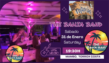 TORROX – Bij Chiringuito Mambo in Torrox treedt zaterdagavond 31 januari The Bahia Band op. Het optreden begint om circa 19.30 uur en duurt ongeveer twee uur.