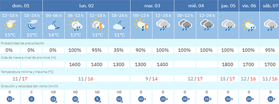 Na de maand januari, die voor Nerja de koudste en vooral de natste was in circa twintig jaar tijd, kent dus ook februari een valse start. De weerkundigen voorzien momenteel op elke dag van de week regenval, met daarbij op maandag en dinsdag enkele onweersbuien. De wind blijft tot en met dinsdag zwak tot matig maar neemt vanaf woensdag overdag sterk in kracht toe.