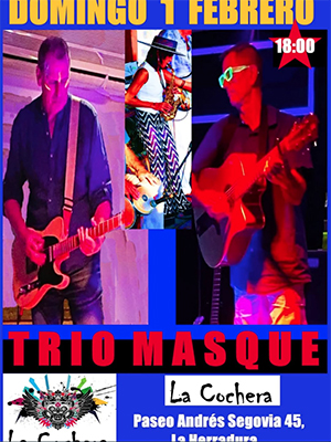 La Cochera is gevestigd aan de Paseo Andrès Segovia, het optreden begint rond de klok van 18.00 uur. Het Trio Masque brengt zogeheten ´funky worldmusic´ ten gehore en bestaat uit Spike Evans (gitaar), Russel Roberts (drum en gitaar) en Christine Quayle (zang, fluit, saxofoon).