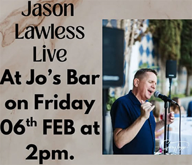 FRIGILIANA – Bij Jo´s Bar Frigiiana treedt vrijdagmiddag 6 februari de regionaal bekende artiest Jason Lawless op. Het optreden begint rond 14.00 uur en duurt circa twee uur.