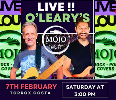 Coverband Mojo bij Ierse pub O´Leary´s in Torrox TORROX – De coverband Mojo speelt zaterdagmiddag 7 februari bij de Ierse pub O’Leary’s in Torrox. Het optreden begint rond de kok van 15.00 uur. De Ierse pub is te vinden aan de Paseo Maritímo de Ferrara in de kustplaats Torrox. Delen: Delen op X (Opent in een nieuw venster) X Share op Facebook (Opent in een nieuw venster) Facebook Vind-ik-leuk Aan het laden...
