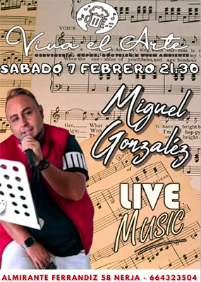 NERJA – Bij bar Viva el Arte in Nerja treedt zaterdagavond 7 februari de Spaanse flamenco-artiest Miguel González op. Cerveceria Viva el Arte is te vinden aan de Calle Almirante Ferrandis (in de volksmond Calle Cristo genoemd) 58 in het centrum van Nerja.