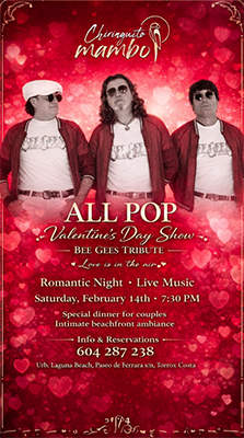 TORROX – Bij Chiringuito Mambo in Torrox is zaterdagavond (Valentijnsdag) 14 februari een Bee Gees Tribute te horen. De band begint omstreeks 19.30 uur.
