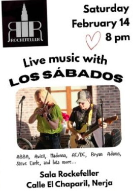 Dúo Los Sábados treedt op bij Sala Rockefeller NERJA – Het Dúo Los Sábados treedt zaterdagavond 14 februari op bij Sala Rockefeller by Fitzgerald´s in Nerja, in het centrum van de stad aan de Calle El Chaparil 7. Het optreden begint rond 20.00 uur. Delen: Delen op X (Opent in een nieuw venster) X Share op Facebook (Opent in een nieuw venster) Facebook Vind-ik-leuk Aan het laden...