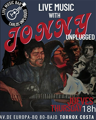 TORROX – Bij de live-music bar Carlos Unplugged in de kustplaats Torrox treedt donderdagavond 19 februari de artiest Jonny Unplugged op.