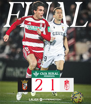 De thuisclub nam na een klein half uur spelen de leiding in de wedstrijd via een treffer van Marc Domènech (1-0). Granada kwam halverwege de tweede helft nog even op gelijke hoogte via Baba Diocou (1-1) maar Ceuta hield toch de drie punten in eigen huis dankzij de winnende treffer van Kuki Zalazar (elf minuten voor tijd, 2-1).