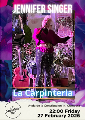 CÓMPETA – Bij La Carpinteria Bar in het Axarquía-dorp Cómpeta treedt vrijdagavond 27 februari de zangeres Jennifer Singer op. Het optreden begint rond 22.00 uur.