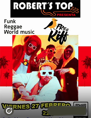 ALMUÑÉCAR – Bij bar/restaurant Robert’s Top in Almuñécar staat vrijdagavond 27 februari een optreden geprogrammeerd van de formatie Free Riff. Het optreden begint rond 22.00 uur en duurt tot circa middernacht.