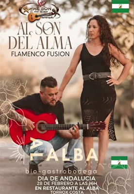 TORROX – In de kustplaats Torrox, op circa tien kilometer afstand van Nerja, treedt zaterdagmiddag 28 februari (Día de Andalucía, red.) het flamenco-duo Al Son del Alma op.