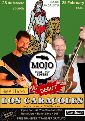 TORROX – Bij restaurante Los Caracoles del Sevillano aan de M-105 tussen Torrox en Frigiliana staat zaterdagmiddag 28 februari (Día de Andalucía) een optreden geprogrammeerd van de band Mojo.