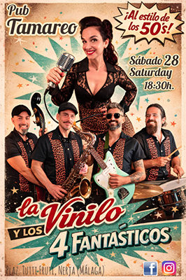 NERJA – De band La Vinilo y Los 4 Fantasticos speelt zaterdagavond 28 februari op het Plaza Tutti Frutti in het centrum van Nerja.