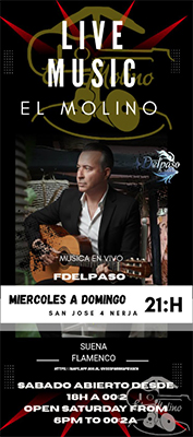 NERJA – Bij bar El Molino in de binnenstad van Nerja treedt zaterdagavond 28 februari (Día de Andalucía, red.) de regionaal vermaarde flamenco-artiest Fernando Delpaso op. Het optreden begint rond de klok van 21.00 uur en duurt tot circa 01.00 uur in de nacht.