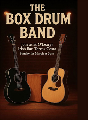 TORROX – The Box Drum Band (met onder anderen de in de Axarquía-regio populaire zanger en gitarist Lee Townsend in de gelederen, red.) treedt zondagmiddag 1 maart op in de kustplaats Torrox, op circa tien kilometer van Nerja gelegen.