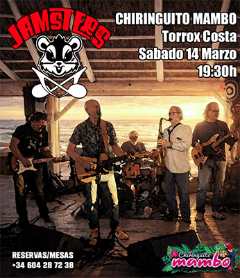 TORROX-COSTA – Bij Chiringuito Mambo in Torrox-Costa treedt zaterdagavond 14 maart de formatie Jamsters op. Het optreden begint om circa 19.30 uur.