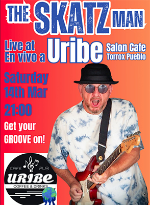 TORROX – Bij Uribe Salon Cafe in de kustplaats Torrox (een kleine tien kilometer onder Nerja gelegen) treedt zaterdagavond 14 maart de zanger en gitarist Skatz (aka ´The SkatzMan´) op.