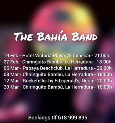 LA HERRADURA – De Bahía Band treedt vrijdagavond 20 maart op bij Chiringuito El Bambú, aan de Paseo Andrés Segovia in de kustplaats La Herradura.