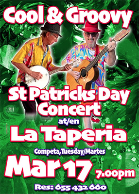 Dit gebeurt vanaf 19.00 uur met diverse optredens waarbij uitsluitend Ierse muziek ten gehore wordt gebracht. Het vooraf boeken van een tafel is mogelijk via het telefoonnummer (+34) 655 432 660.