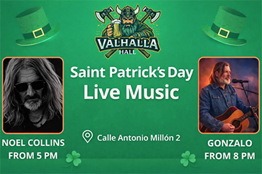 NERJA – De muzikanten Noel Collins en Gonzalo maken dinsdag 17 maart hun opwachting bij de nieuwe bar Valhalla Hall in Nerja tijdens de jaarlijkse viering van de Ierse nationale feestdag, St. Patricks Day.