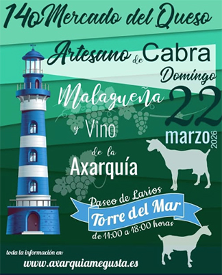 TORRE DEL MAR – In de kustplaats Torre del Mar is op zondag 22 maart de veertiende editie van de jaarlijkse lokale Mercado del Queso (kaasmarkt, red.) te bezoeken.
