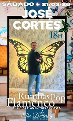 TORROX COSTA – Bij de Butterfly Beach Club in de kustplaats Torrox, op zo’n tien kilometer afstand van Nerja, staat zaterdagavond 21 maart een optreden gepland van de flamenco-artiest José Cortés.