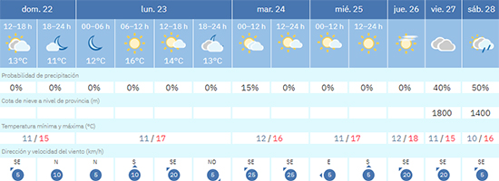 NERJA – Nerja staat een week te wachten met zonnige perioden zonder neerslag. Regen wordt er wél weer verwacht in het volgende weekeinde. Dit blijkt uit meest recente weersvoorspellingen door de meteorologen van het weerstation Aemet (Agencia Estatal de Meteorología).