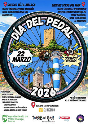 TORRE DEL MAR – De jaarlijkse Día del Pedal wordt in Torre del Mar dit jaar op zondag 22 maart gevierd. Dit gebeurt rond 11.30 uur vanaf de sportvelden bij de lokale vuurtoren.