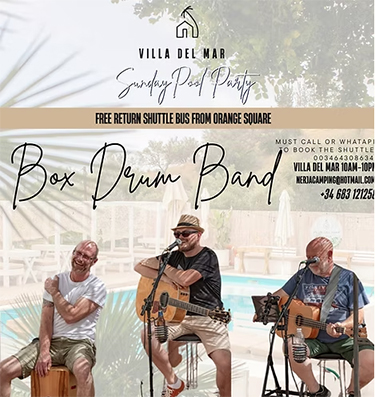 MARO – De Box Drum Band (met onder anderen de regionaal enorm populaire zanger en gitarist Lee Townsend in de gelederen) treedt zondagmiddag 29 maart op bij camping Villa del Mar in Maro (aan de kust naast Nerja gelegen). Het optreden is vrij toegankelijk en duurt van circa 13.00 uur tot ongeveer 16.00 uur.