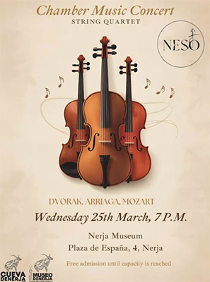 NERJA – In het Museo de Nerja, aan het Plaza de España in het centrum van de stad, staat woensdagavond 25 maart een mini-concert op het programma wat wordt verzorgd door het String Quartet.