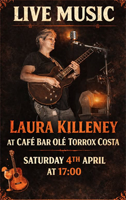 TORROX – In bar Olé in de kustplaats Torrox (zo´n tien kilometer onder Nerja gelegen) treedt zaterdagmiddag 4 april de Britse zangeres en gitariste Laura Killeney op.