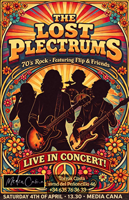 TORROX – Bij Chiringuito Medía Caña in de kustplaats Torrox is zaterdag 4 april vanaf 13.30 uur de formatie The Lost Plectrums te horen. Media Caña is te vinden aan de Avenida del Peñoncillo (de kustweg) 46 in Torrox, op circa tien kilometer van Nerja.