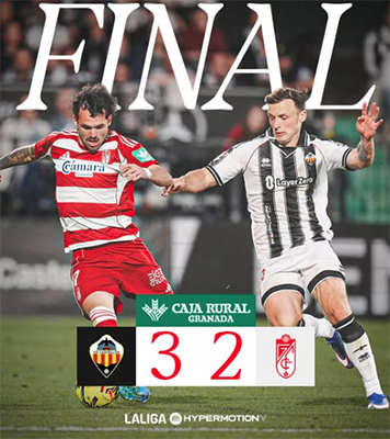 CASTELLO DE LA PLANA – De Andalusische voetbalclub Granada CF heeft maandagavond 6 april in 34ste speelronde voor de Spaanse Segunda División géén punten overgehouden aan de uitwedstrijd tegen CD Castellón. In een gelijk opgaande wedstrijd trok de thuisclub uiteindelijk aan het langste einde: 3-2.