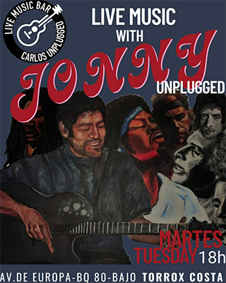TORROX – Bij de live-music bar Carlos Unplugged in de kustplaats Torrox treedt dinsdagavond 7 april de gitarist Jonny Unplugged op.