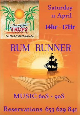 CALETA DE VÉLEZ – In de kustplaats Caleta de Vélez treedt zaterdagmiddag 11 april de formatie Rum Runner op. Dit gebeurt bij Chiringuito Tropy, vlakbij de jachthaven van Vélez-Málaga, Puerto Caleta de Vélez.