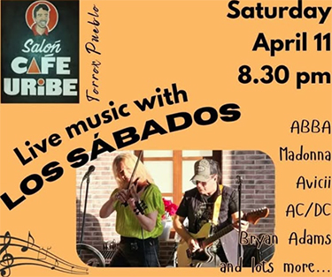 TORROX – Bij Uribe Salon Cafe in de kustplaats Torrox (een kleine tien kilometer onder Nerja gelegen) treedt zaterdagavond 11 april de band Los Sábados op.