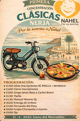 Voor dit doel verzamelen zich een groot aantal klassieke auto´s en bromfietsen/motoren op het markterrein van Nerja, waar gedurende gehele dag dj´s voor de muziek zorgen, dansgroepen shows geven, paella kan worden gegeten en andere activiteiten plaatsvinden.