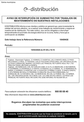 Het onderhoud staat gepland tussen 07.30 en 14.15 uur. Meer informatie is te verkrijgen via het telefoonnummer (+34) 900 850 840 en/of de website http://www.edistribucion.com.
