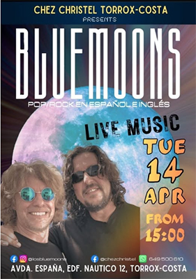 TORROX-COSTA – In bar Chez Christel in de kustplaats Torrox, op zo’n tien kilometer afstand van Nerja, staat dinsdagmiddag 14 april een optreden gepland van het duo BlueMoons.