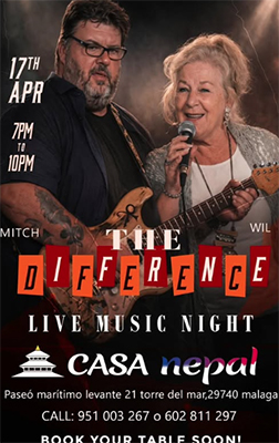 TORRE DEL MAR – In de kustplaats Torre del Mar treedt vrijdagavond 17 april het duo The Difference op.