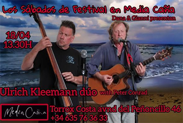 TORROX – Bij Chiringuito Medía Caña in de kustplaats Torrox is zaterdagmiddag 18 april vanaf 13.30 uur het Ulrich Kleemann Duo te horen. Media Caña is te vinden aan de Avenida del Peñoncillo (de kustweg) 46 in Torrox, op circa tien kilometer van Nerja.