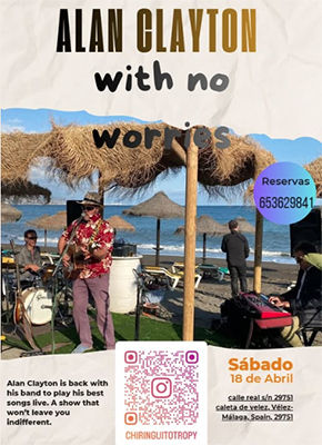 CALETA DE VELEZ – In de kustplaats Caleta de Velez treedt zaterdagmiddag 18 april de Britse gitarist Alan Clayton met zijn band No Worries op.