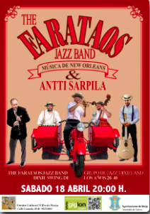 NERJA – In het Centro Cultural de Nerja treedt zaterdagavond 18 april de Farataos Jazz Band op. Deze muzikanten brengen voornamelijk dixie- en jazzmuziek in de zogeheten ‘New Orleans-style’ uit de jaren tussen 1920-1950 ten gehore. Het optreden begint rond de klok van 20.00 uur, de entreebewijzen kosten twintig euro per persoon.