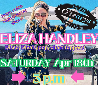 TORROX – De zangeres Eliza Handley treedt zaterdagmiddag 18 april op bij O’Leary’s Irish Bar aan de Paseo Maritímo de Ferrara in de kustplaats Torrox.