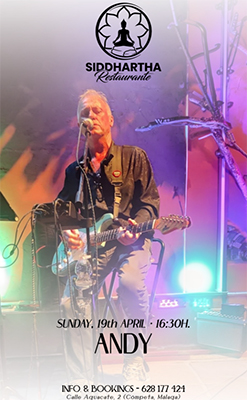 CÓMPETA – In het bergdorp Cómpeta treedt zondagmiddag 19 april de zanger en gitarist Andy Cornaby op. Dit gebeurt bij bar Siddhartha aan de Calle Aguacate 2.
