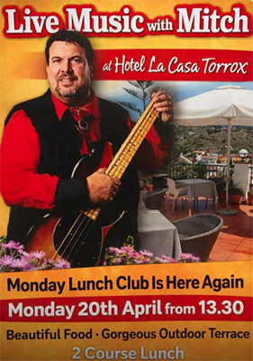 TORROX – In de kustplaats Torrox, op circa tien kilometer afstand van Nerja, treedt maandagmiddag 20 april de zanger en gitarist Mitch op.